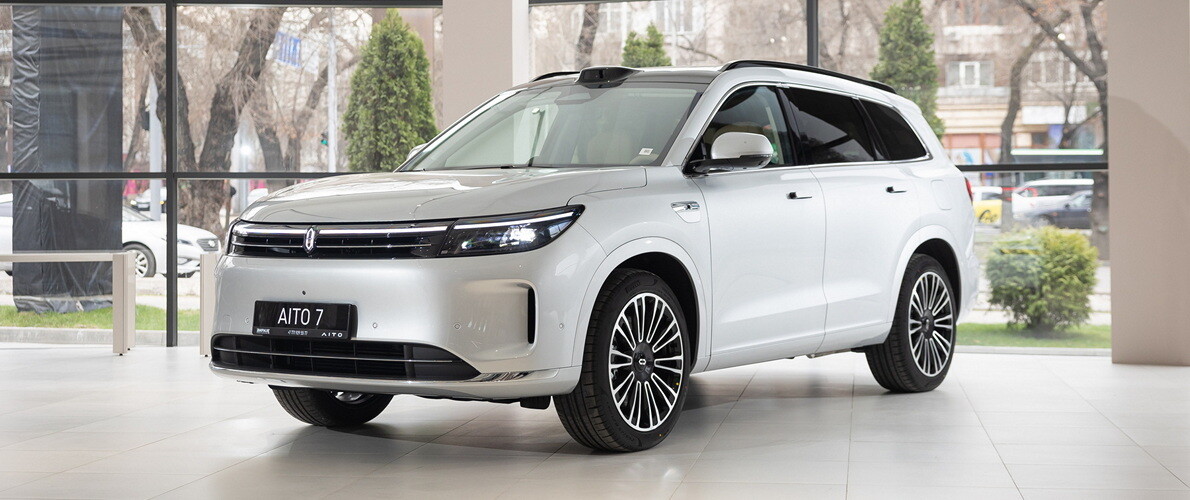 АИТО 7 в Алматы в автосалоне AITO Almaty по цене от 26 300 000 ₸ до 27 700 000 ₸. Вы можете купить новый кроссовер AITO 7 2024 года выпуска в 2 комплектациях c объёмом двигателя 1.5 л (496 л. с.)